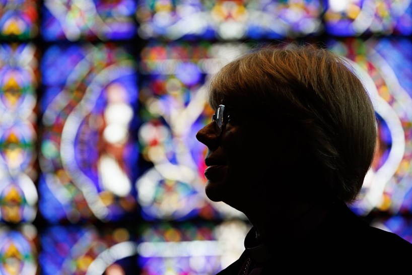 Neil Turner/Lambeth PalaceThe Archbishop of Canterbury-designate, the Rt Revd Sarah Mullally, in Canterbury Cathedral in October. Her election followed in November