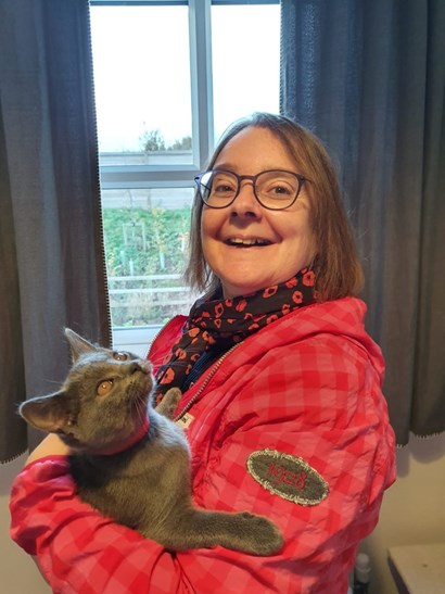 I’m a cat junkie. I have three: an 11-year-old Russian Blue, Lulu; Poppy, a Chartreux, aged five [in the photo]; and KitKat, a chocolate Birman, aged four. Lulu is the matriarch, teased by the little imp KitKat, with Poppy very stable and calm.