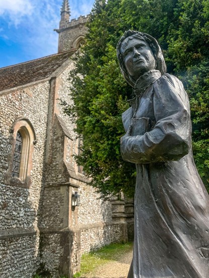 AlamyA bronze statue of Jane Austen in the churchyard of St Nicholas’s, Chawton, her former home in Hampshire